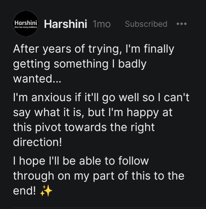 The thing I really wanted, which I'm referring to in this note, is that I started going to therapy! 😄