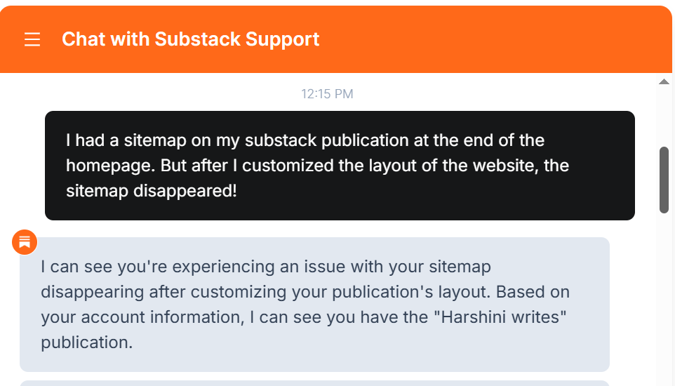 I decided to contact the Substack Support Bot to see if it knows something. Here’s how it went: